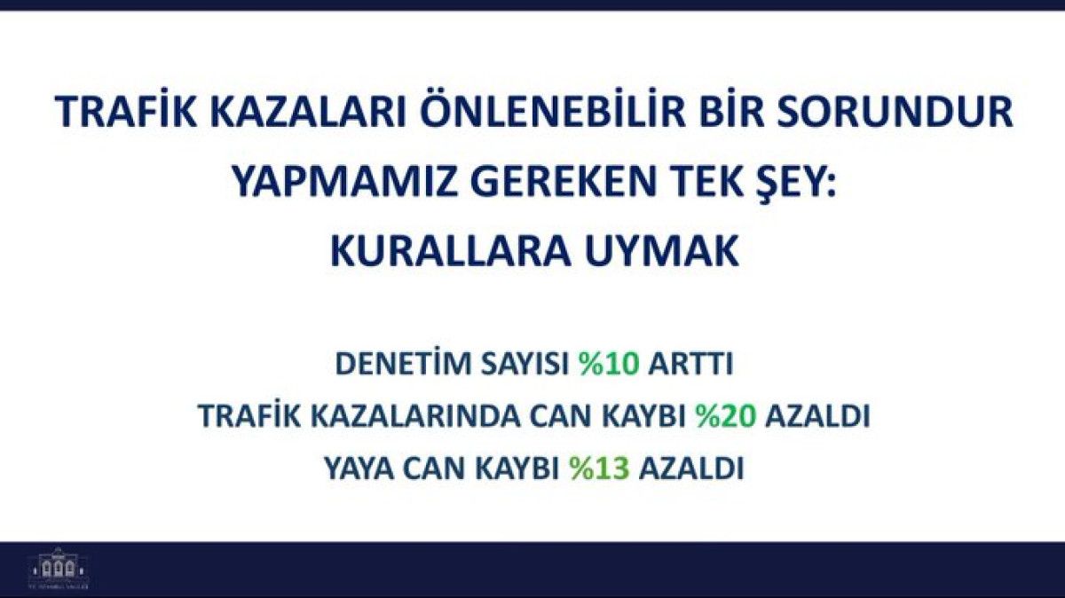 Bu anlayışla her geçen gün artan denetimler sayesinde 2025 yılının ilk 10 ayında geçen yılın aynı dönemine göre; Ölümlü kaza sayısı yüzde 18 azaldı. Can kaybı yüzde 20 oranında düştü. Yaya can kaybı %13 azaldı. Motosiklet kazalarında ise can kaybı yüzde 23 düştü.